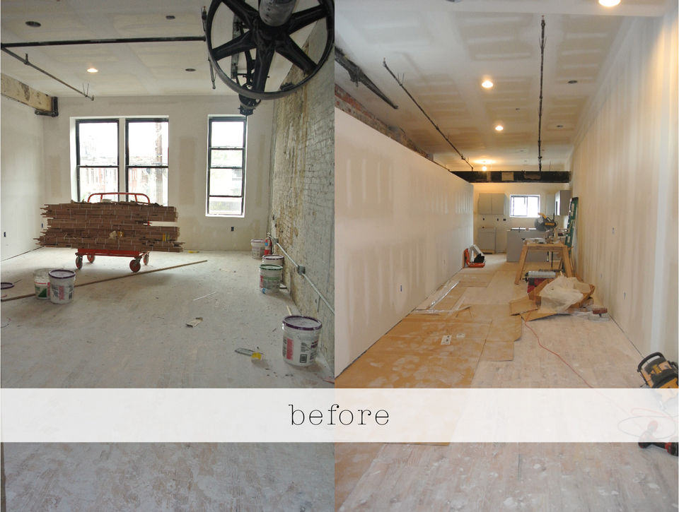 Complete renovation of 8000 sq foot 2nd floor warehouse garage space converted to a 3 bedroom loft, featured in Philly Style magazine.